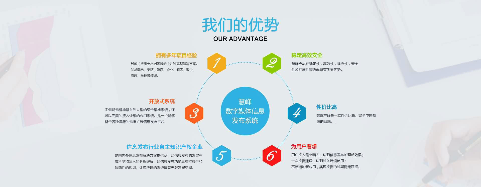 公司本著互惠互利,誠實信用的原則,真誠面對用戶,并愿與社會各界展開廣泛的合作。 公司現已是國內的數字媒體信息發(fā)布系統(tǒng)解決方案提供商,產品涉及大中型企業(yè)、商業(yè)地產、各級黨政機關、軍隊、司法、信息通信、金融、醫(yī)療、教育、能源交通、公用事業(yè)領域。